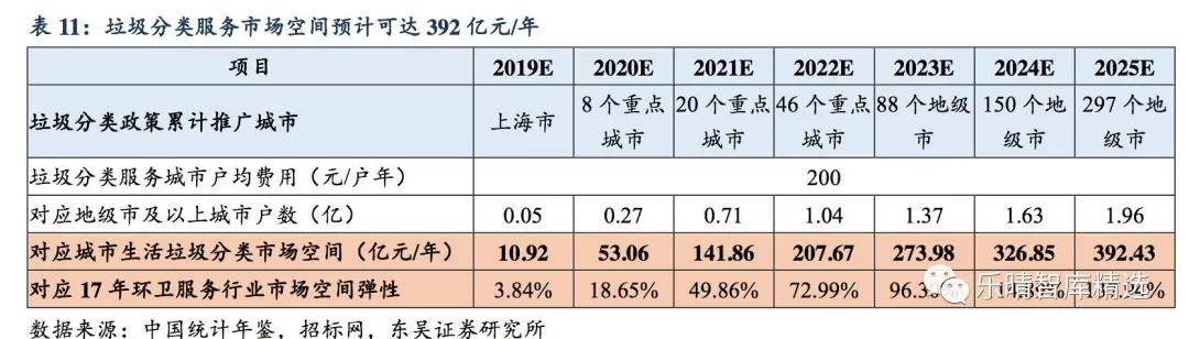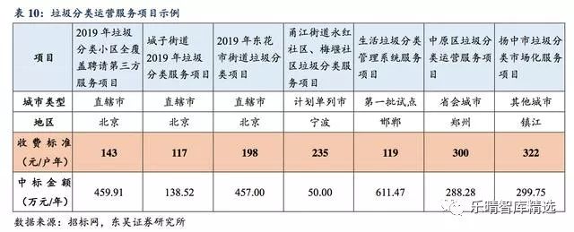 垃圾分類前端運(yùn)營服務(wù)新增市場空間達(dá)392億/年。隨著垃圾分類政策的不斷推行,許多城市已經(jīng)開始推行垃圾分類運(yùn)營服務(wù)項(xiàng)目,環(huán)衛(wèi)服務(wù)市場將進(jìn)一步擴(kuò)容。以北京/寧波/邯鄲/鄭州/鎮(zhèn)江四類城市項(xiàng)目為參考,假設(shè)城市垃圾分類服務(wù)戶均費(fèi)用為200元/戶年。