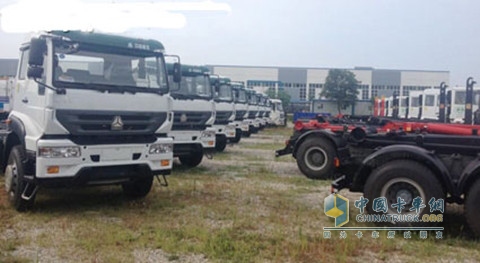 近日,在中國重汽濟(jì)南商用車銷售部改裝單位煙臺海德專用汽車有限公司,30輛金王子拖臂鉤式垃圾車整裝完畢,即將交付用戶。