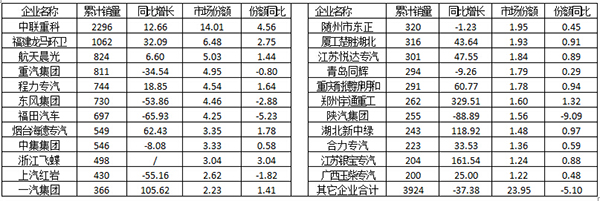 表4 2015年1~12月在山東省垃圾車銷量前10家企業(yè)及該省垃圾車分類銷售情況 單位:輛,%