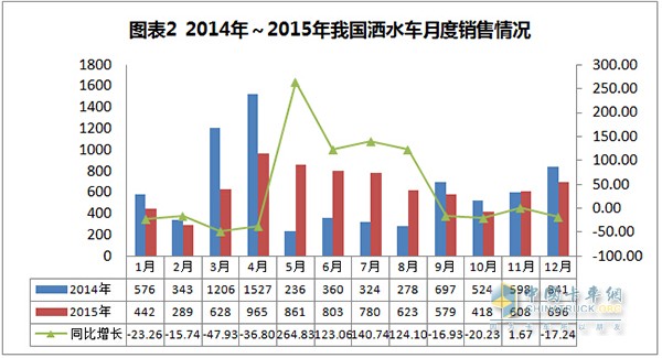 1、2015年全國灑水車總體銷售情況