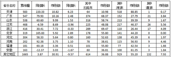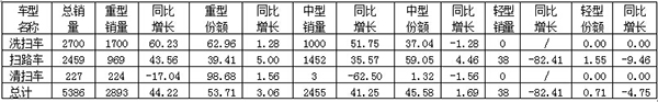 2、2015年全國洗掃車銷售情況