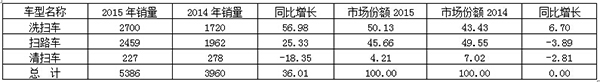 (一)2015年全國清掃/洗掃/掃路車市場總體銷售情況