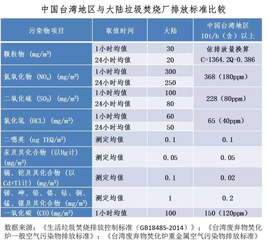 1、臺灣垃圾焚燒廠的排放標準