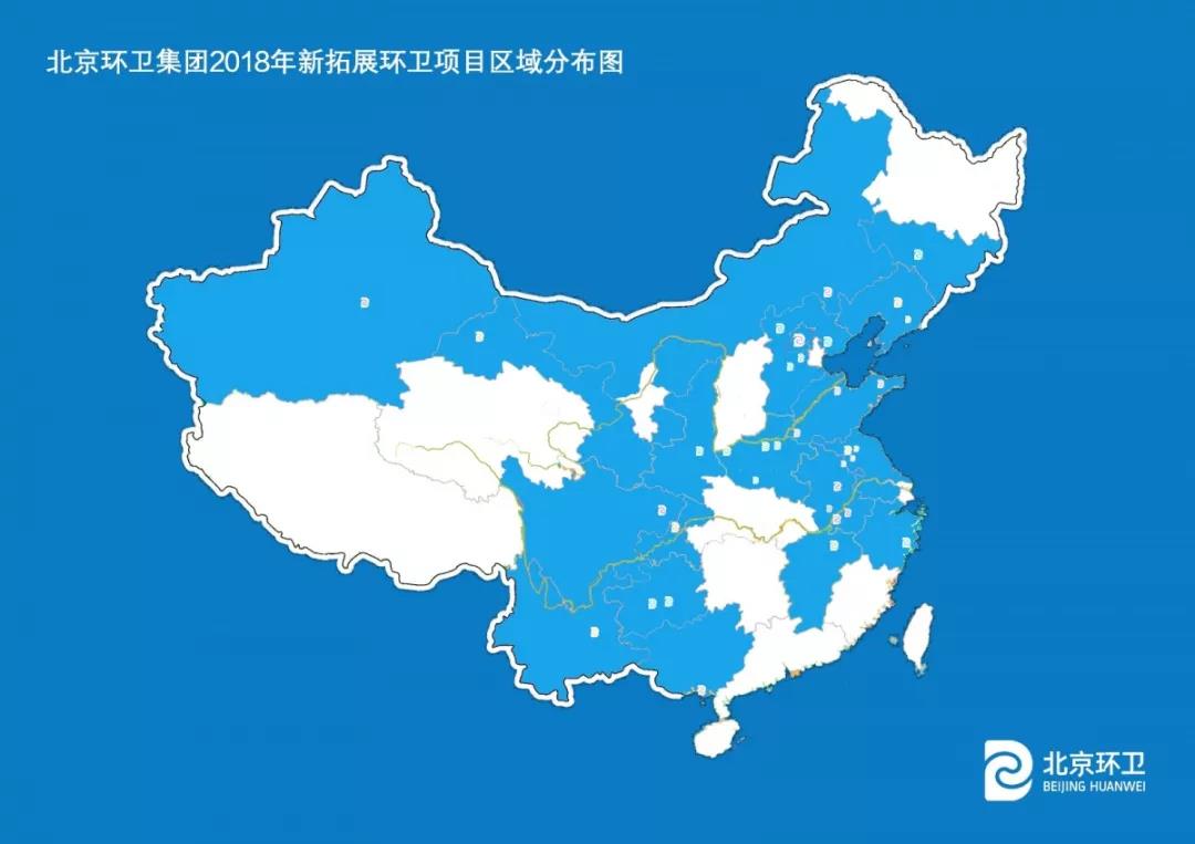 集團(tuán)公司憑借先進(jìn)模式、過硬服務(wù)和品牌優(yōu)勢,立足首都,積極向京津冀、全國市場輻射拓展,2018年所取得的環(huán)衛(wèi)項(xiàng)目分布區(qū)域廣泛,覆蓋了東北、西北、華北、華中、華東、西南、華南七大區(qū)域的19個省市自治區(qū)35個市縣。