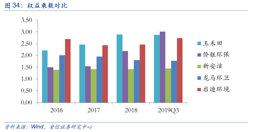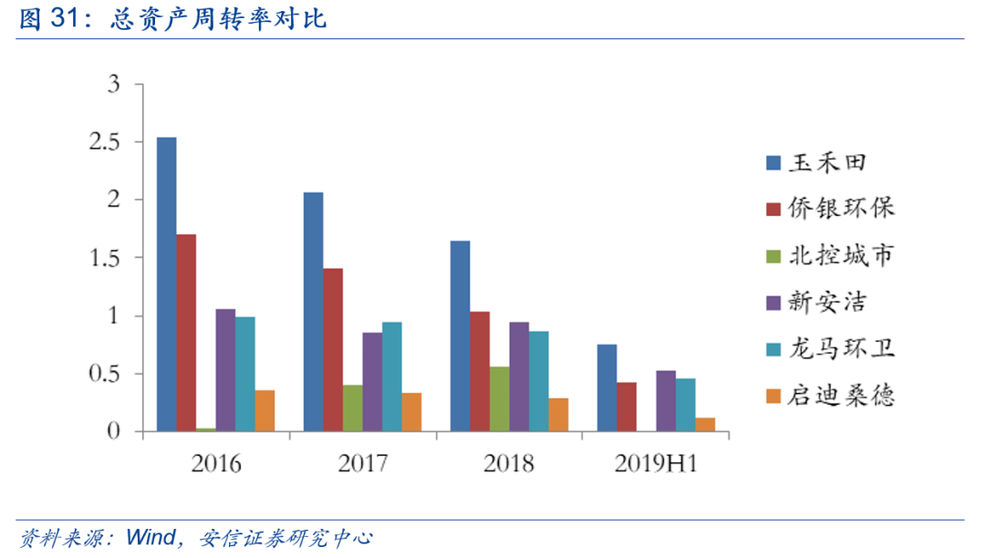 著重對(duì)比了玉禾田和僑銀環(huán)保兩家公司在18年和19年三季度的數(shù)據(jù),我們發(fā)現(xiàn)兩家公司的ROE水平都略微下降,主要原因是隨著機(jī)械化率的提升,資產(chǎn)增速超過營收增速導(dǎo)致資產(chǎn)周轉(zhuǎn)率都下滑。但是玉禾田的ROE水平依舊遠(yuǎn)超過僑銀環(huán)保,除了玉禾田專注于精細(xì)化運(yùn)營,在費(fèi)用方面控制得當(dāng)外,更是由于公司是純粹的市政環(huán)衛(wèi)和物業(yè)保潔運(yùn)營商,沒有涉足環(huán)衛(wèi)車輛設(shè)備或者末端垃圾處置等業(yè)務(wù),資產(chǎn)周轉(zhuǎn)率遠(yuǎn)超同行,進(jìn)而推升公司ROE。