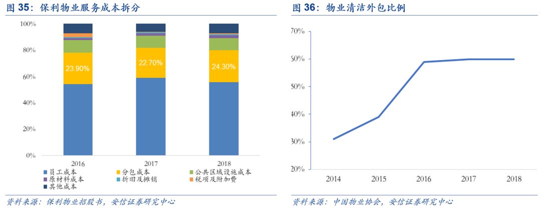 盡管物業(yè)管理行業(yè)競(jìng)爭(zhēng)非常激烈,但是玉禾田專注于物業(yè)清潔業(yè)務(wù),與目前市面上普遍存在的綜合管理物業(yè)公司不存在直接競(jìng)爭(zhēng)關(guān)系,并且相當(dāng)多的大型綜合物業(yè)管理公司會(huì)把清潔內(nèi)業(yè)務(wù)外包出去,而在清潔服務(wù)具備品牌優(yōu)勢(shì)的玉禾田依然能夠在物業(yè)管理行業(yè)分一杯羹。根據(jù)保利物業(yè)的招股說明書不難發(fā)現(xiàn),其分包成本是除了員工成本最大的開支,并且有提升趨勢(shì)。