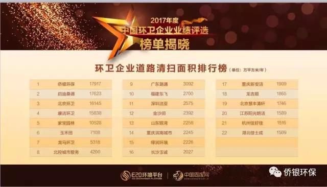 在這環(huán)衛(wèi)之春,僑銀環(huán)保的道路清掃面積達(dá)到了17916萬平方米/年,位列E20環(huán)境平臺本次公布的全國環(huán)衛(wèi)企業(yè)道路清掃排行榜首位。