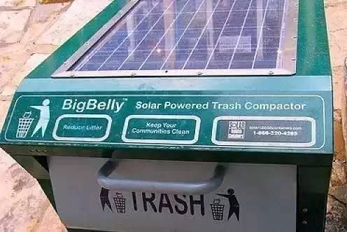 這種新式垃圾箱內(nèi)置壓縮機(jī)可以利用太陽(yáng)能對(duì)垃圾進(jìn)行壓縮,在負(fù)重達(dá)到一定程度時(shí),傳感器自動(dòng)開啟設(shè)備壓縮垃圾,當(dāng)垃圾桶容量滿時(shí),會(huì)自動(dòng)發(fā)出E-mail通知清潔工清理垃圾箱。