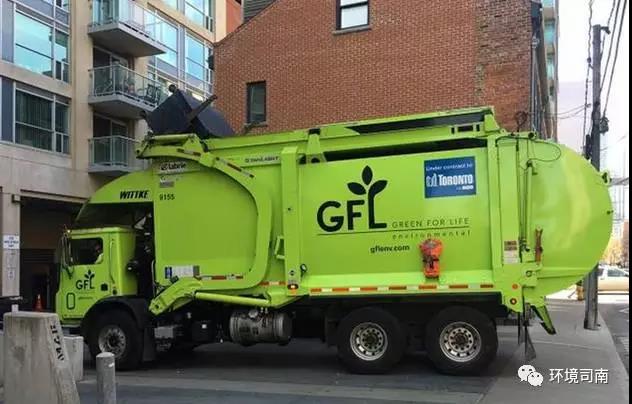 GFL公司與市政府簽訂了收運服務(wù)合同,圖中是一輛該公司的收運車