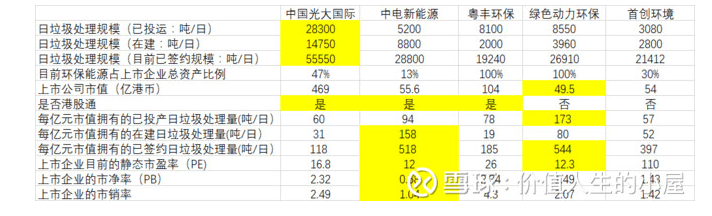 首先我們來看一下五大發(fā)電企業(yè)目前垃圾處理規(guī)模,市值,市盈率,市凈率和市銷率情況,這里的能源環(huán)保項目的處理量只是針對國內項目,沒有計算國外項目。 下面直接上圖:
