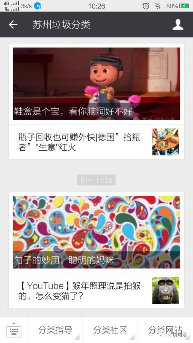 二是建設蘇州垃圾分類微信平臺,每日推送蘇州市垃圾分類最新動態(tài),接收市民咨詢與舉報。微信平臺和網(wǎng)站平臺相輔相成,雙管齊下為蘇州垃圾分類宣傳提供保障。