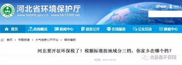 12月1日下午,河北省人大常委會(huì)表決通過了《河北省環(huán)境保護(hù)稅應(yīng)稅大氣污染物和水污染物適用稅額方案》,方案將于2018年1月1日起施行,《方案》將環(huán)保稅主要污染物稅額標(biāo)準(zhǔn)按地域分為三檔,分別按照國(guó)家規(guī)定最低標(biāo)準(zhǔn)的8倍、5倍、4倍執(zhí)行。