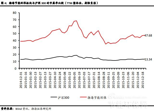 從估值方面看,截至12月25日,渤海節(jié)能環(huán)保板塊(TTM整體法,剔除負值)市盈率為47.68倍,相比年初增加了22.8%,相對滬深300的估值溢價率則為257%。目前板塊估值相對較高,不具備明顯優(yōu)勢。