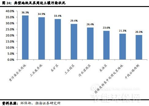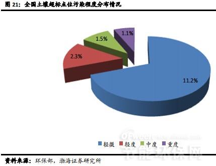 根據(jù)《全國土壤污染狀況調(diào)查公報》中不同土地利用類型土壤的點位超標率,測算目前我國受污染土地面積高達15.7億畝,其中中重度污染面積約2.8億畝,潛在修復市場空間巨大。根據(jù)環(huán)保部運用國際通行模型所作的預測,我國土壤修復市場帶動的投資規(guī)模將超過5.7萬億。