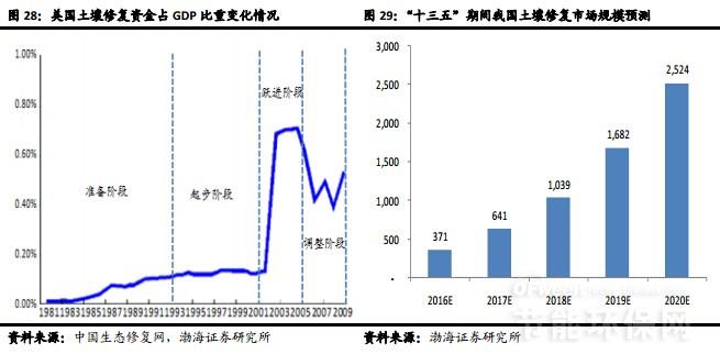 我們認為,土壤保護立法的加快推進、標準體系的逐步完善、以及相關政策的持續(xù)推出,為土壤污染防治的長遠發(fā)展奠定了堅實的基礎。特別地,即將出臺的“土十條”,作為頂層設計,將為我國的土壤污染防治指明方向,而后續(xù)相關配套政策措施的出臺與落實則有望實質(zhì)性推動土壤修復領域發(fā)展,加速潛在治理需求的釋放,持續(xù)打開市場空間。