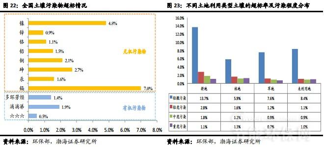在所調(diào)查的8類典型地塊及其周邊土壤中,重污染企業(yè)用地、工業(yè)廢棄地以及采礦區(qū)的土壤點位超標率均超過30%;同時,工業(yè)園區(qū)的土壤點位超標率為29.4%,接近30%。