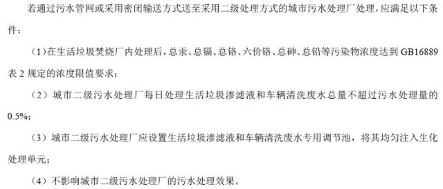 按照GB18485-2014《生活垃圾填埋場(chǎng)污染物控制標(biāo)準(zhǔn)》 8.7條規(guī)定,垃圾焚燒場(chǎng)產(chǎn)生的垃圾滲濾液在達(dá)到如下條件后是可以進(jìn)入市政污水處理廠的。