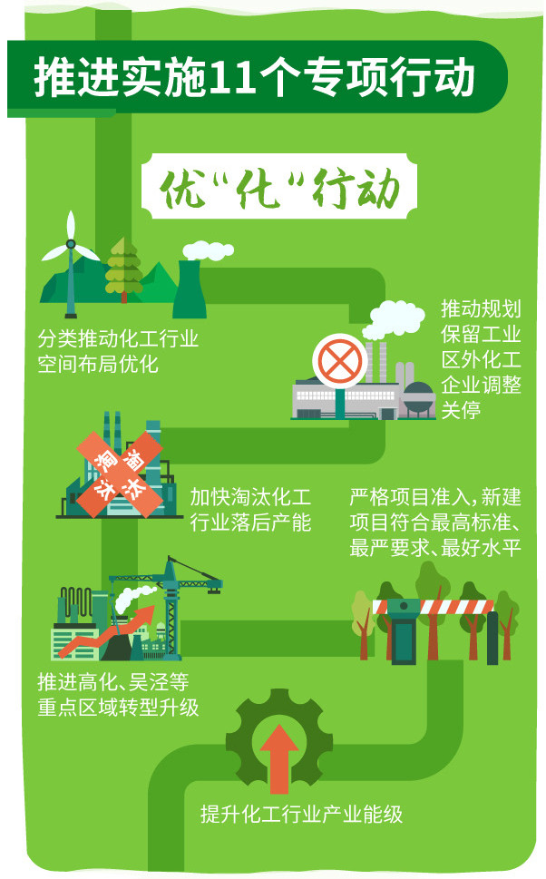 “優(yōu)‘化’行動(dòng)”聚焦化工行業(yè)優(yōu)化提升,通過(guò)嚴(yán)格項(xiàng)目準(zhǔn)入、嚴(yán)格執(zhí)法監(jiān)管、實(shí)施清潔生產(chǎn)、推進(jìn)治理升級(jí)等多種手段,加快淘汰化工行業(yè)落后產(chǎn)能,抓緊推動(dòng)化工企業(yè)搬遷入園,持續(xù)優(yōu)化化工行業(yè)空間布局,不斷提升專業(yè)園區(qū)產(chǎn)業(yè)能級(jí)。