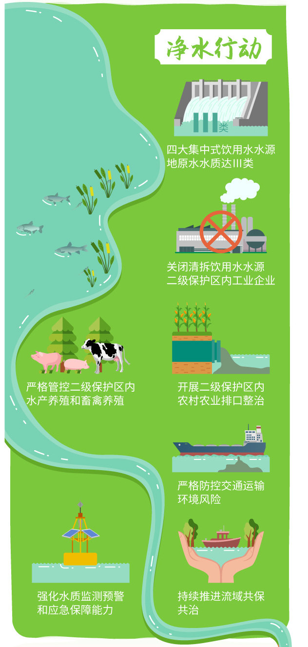 “凈水行動(dòng)”聚焦飲用水水源地安全保證,全面深化水源地保護(hù)區(qū)污染整治,嚴(yán)控交通、工業(yè)、農(nóng)業(yè)等環(huán)境風(fēng)險(xiǎn),強(qiáng)化水質(zhì)監(jiān)測(cè)預(yù)警和應(yīng)急保障能力,持續(xù)推進(jìn)流域共保共治。到2020年,本市原水水質(zhì)達(dá)到地表水Ⅲ類水質(zhì)標(biāo)準(zhǔn)。