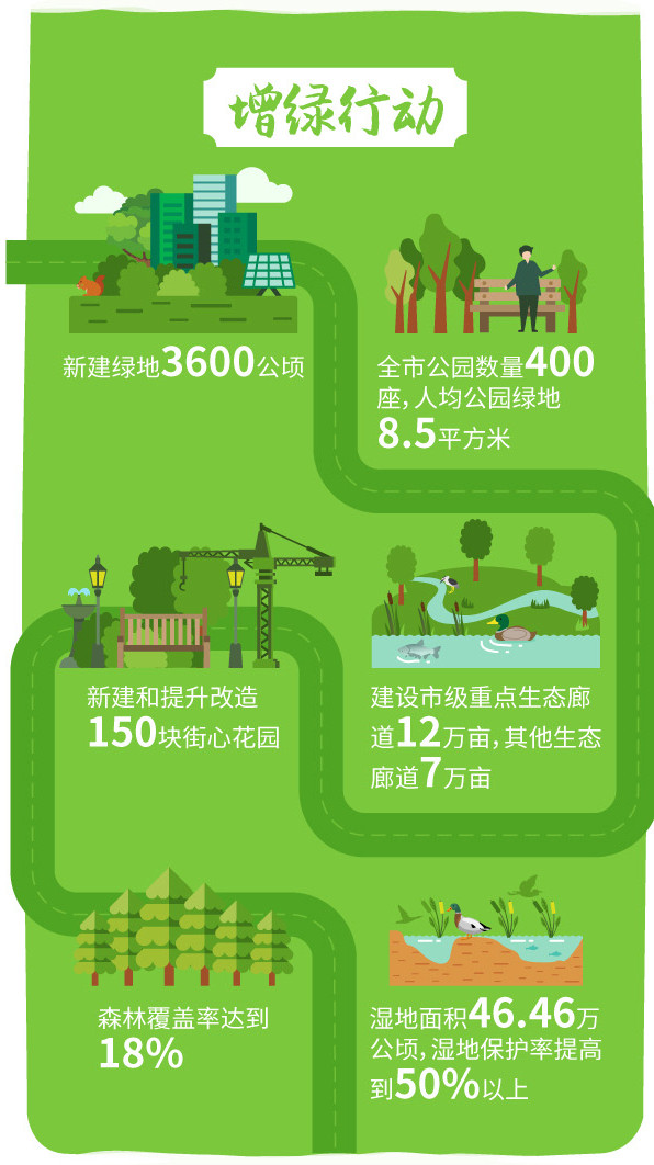 “增綠行動(dòng)”聚焦生態(tài)系統(tǒng)服務(wù)功能提升,加快推進(jìn)綠地系統(tǒng)建設(shè),全面推進(jìn)生態(tài)廊道建設(shè),不斷提升綠地花園服務(wù)能級(jí),加大濕地、綠林地等生態(tài)資源保護(hù)力度。