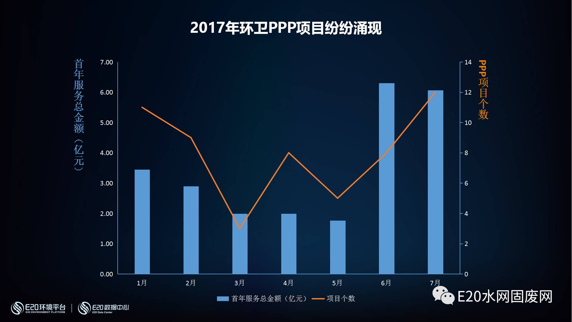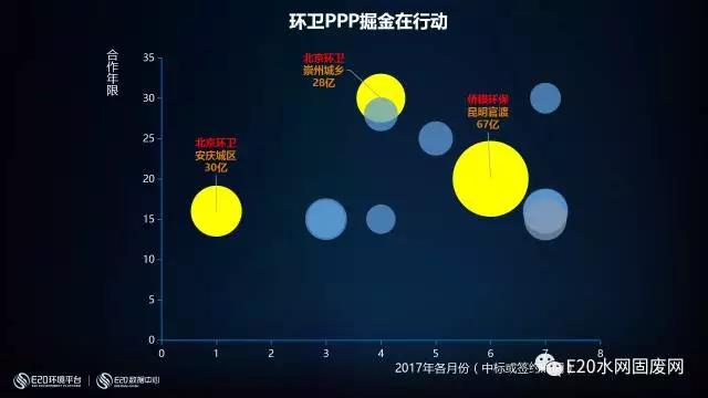 下圖顯示的是七個月所推出的PPP項目的規(guī)模,圓圈越大項目越大,可以直觀的看到近期的一些大型項目,年度金額最大的應(yīng)該是僑銀在官渡的項目。(相關(guān)閱讀→67億!全國最大環(huán)衛(wèi)PPP項目落戶僑銀環(huán)保)