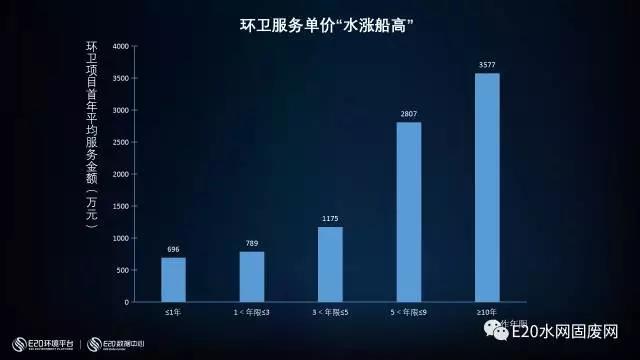 PPP模式對環(huán)衛(wèi)市場化的新浪潮居功至偉,而下圖所示的環(huán)衛(wèi)服務(wù)的單價變化情況也能發(fā)現(xiàn)與PPP相關(guān)的有意思的影響。我們統(tǒng)計了不同服務(wù)年限的項目情況,把所有項目的首年服務(wù)費價格進行平均以后我們發(fā)現(xiàn),合作期越長,首年服務(wù)費越高。為什么?有兩個原因,第一,后期的項目往往都是走PPP模式,既然要走一次復(fù)雜的PPP程序,政府傾向會劃出更廣的外包范圍,聯(lián)合幾個街道甚至幾個區(qū),做大的市場化,這自然帶來了首年服務(wù)費用的提高。第二,在超過十年以上的市場化項目,既然項目有十年以上的期限,項目設(shè)計上就會要求社會資本在項目期間增加投資來升級裝備和技術(shù),這也會帶來服務(wù)費的提高。這種趨勢也會帶來一個對產(chǎn)業(yè)升級的積極效應(yīng),就是環(huán)衛(wèi)PPP的社會資本更加注重本身技術(shù)能力的提高和科技裝備的升級,這使得環(huán)衛(wèi)產(chǎn)業(yè)成為更高端的市場,也帶來了企業(yè)自身的增長空間。