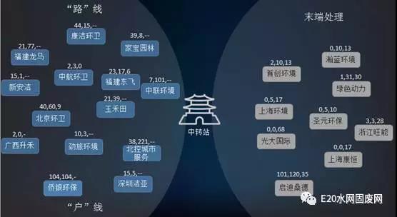 為此,我們統(tǒng)計了具有較大市場PPP規(guī)模的企業(yè)在這三個項目點上的業(yè)績,如下圖所示。每個企業(yè)上面有三個數(shù)字,第一個數(shù)字是前端清掃或清運的項目數(shù)量,第二個數(shù)字代表控制的中轉(zhuǎn)站的數(shù)量,第三個數(shù)字代表其末端垃圾焚燒廠的數(shù)量。據(jù)此可以看清兩大陣營的對局。相信未來五到十年兩大陣營企業(yè)將走向一段很糾纏的局面。