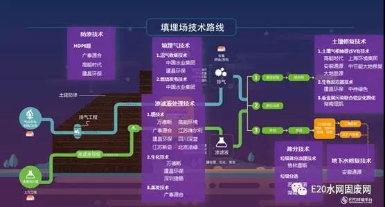 我們另外發(fā)布了填埋場的技術(shù)路線圖譜,凸顯了在這方面具有一定技術(shù)優(yōu)勢的優(yōu)秀企業(yè),包括途徑、防滲、篩分、土地修復(fù)等。具體企業(yè)分布如下圖所示。