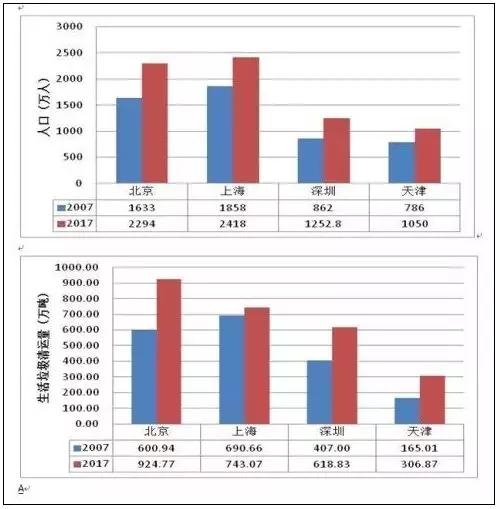 國內的數(shù)據(jù)本該可比,實際可比性很差。比如深圳的生活垃圾清運量是天津的兩倍,而統(tǒng)計的人口深圳只比天津多20%,深圳的實際居住人口恐怕明顯被低估。上海的生活垃圾清運量在2013年以前一直比北京高,2013年以后無緣無故地降下來了,是什么因素,是否有人為因素?天津的人均生活垃圾清運量少,并不是真的產(chǎn)生少,而是收集范圍沒有全覆蓋或者沒有統(tǒng)計;上海的人均生活垃圾清運量少,并不是真的產(chǎn)生量少;北京市人均生活垃圾高達1.1千克/人·日,明顯高于天津、上海,這里還不包括廢品,是居住人口沒有充分統(tǒng)計,還是生活垃圾量重復統(tǒng)計,比如綜合處理廠的生活垃圾最終在填埋場或焚燒廠還要統(tǒng)計一次?