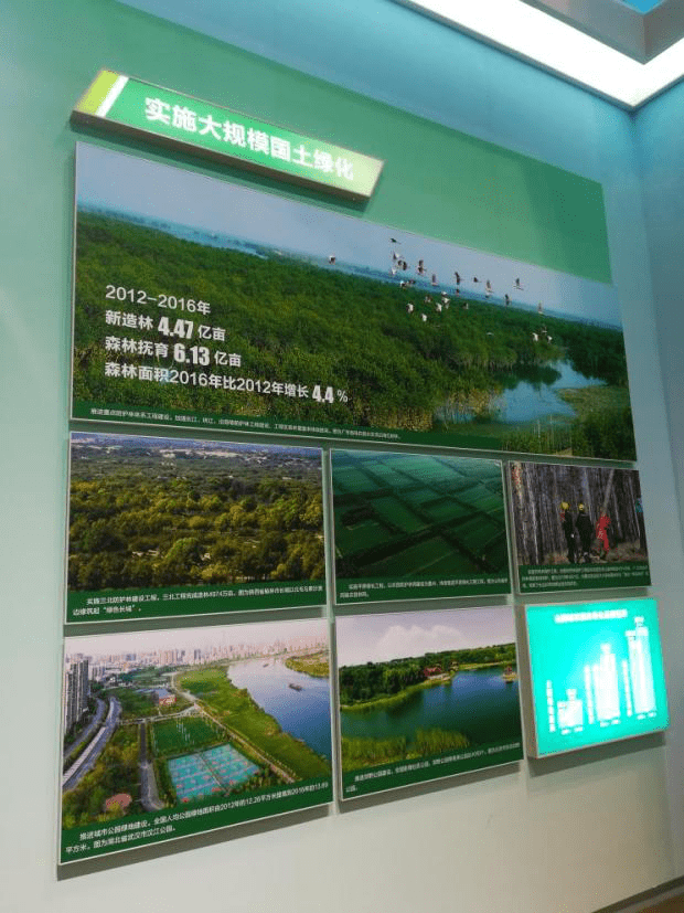 成就展共規(guī)劃設(shè)計(jì)了10個(gè)主題內(nèi)容展區(qū)和特色體驗(yàn)展區(qū)、網(wǎng)上展館。其中,以“綠水青山就是金山銀山,邁入社會(huì)主義生態(tài)文明新階段”為主題的第六展區(qū)集中展示了十八以來我國生態(tài)文明建設(shè)的主要成就。