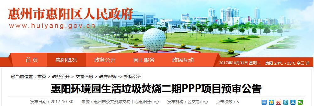 以下為惠陽環(huán)境園生活垃圾焚燒二期PPP項目預(yù)審公告全文