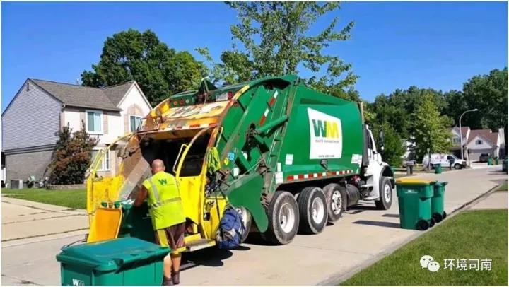 廢物管理(WM)公司的收運(yùn)卡車正在底特律市內(nèi)提供收運(yùn)服務(wù)