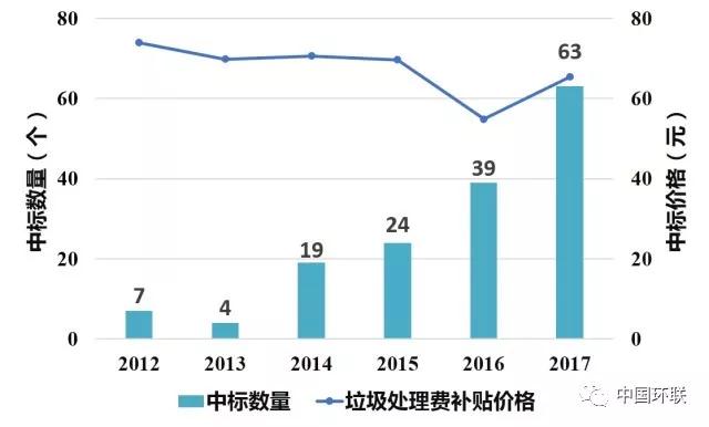 2012年-2017年全國生活垃圾焚燒廠中標情況