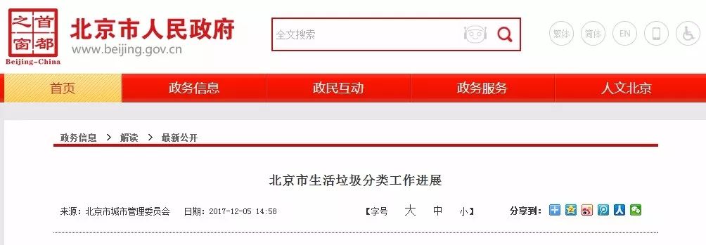 2017年12月5日,北京市城市管理委員會(huì)發(fā)布了《北京市生活垃圾分類工作進(jìn)展》一文,對(duì)北京市2017年1-10月的垃圾分類工作開展?fàn)顩r及亮點(diǎn)、經(jīng)驗(yàn)等作出了簡(jiǎn)要的描述與總結(jié),小編帶領(lǐng)大家來圍觀~