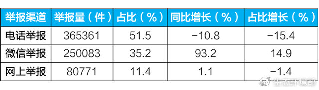 表1  2018年主要渠道舉報量及同比變化情況