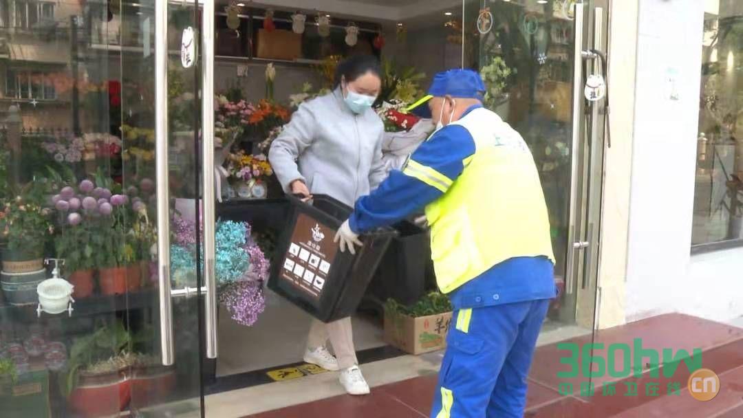 2/4“一戶一碼”制度是由環(huán)衛(wèi)部門為每個沿街商戶定制的專屬二維碼,環(huán)衛(wèi)工人定時上門,掃碼“取垃圾”。商戶們再也不需費力找垃圾站,每日傾倒垃圾省時省力。