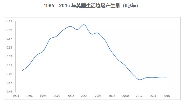 1995 年,英國頒布了填埋稅的收費政策,對傾倒垃圾者征稅,以家庭為單位,每個月固定繳納 5 英鎊的垃圾稅,并于 1996 年開始實施。但這一政策并未有效阻止英國人均生活垃圾產量的上升趨勢。