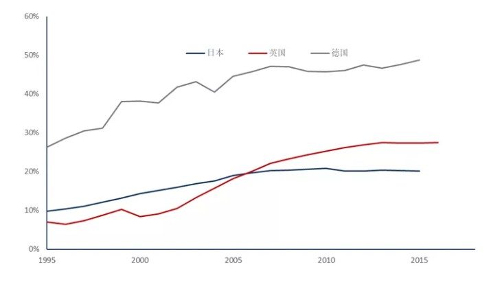 參考發(fā)達國家水平,日本、英國與德國在過去20年中,回收利用的比例一直呈上升趨勢?;厥绽迷谏罾幹每偭恐械恼急?,目前分別達到20%、27%與49%。