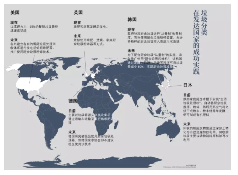 不只是在我國,在全球多個已具備成熟垃圾分類與處理體系的發(fā)達國家,濕垃圾的處理也不盡相同。