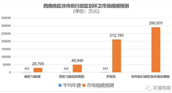 西南地區(qū)的非傳統(tǒng)行政區(qū)劃單位已經(jīng)有部分實(shí)現(xiàn)環(huán)衛(wèi)市場(chǎng)化,或已經(jīng)在試點(diǎn)環(huán)衛(wèi)市場(chǎng)化,508個(gè)非傳統(tǒng)行政區(qū)劃單位的環(huán)衛(wèi)市場(chǎng)化理論規(guī)模在30億元左右。