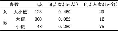 2)男、女在生理上的差異,使男性和女性每小時用廁次數(shù)、單次用廁時間都不盡相同,而男性平均每小時的小便次數(shù)和大便次數(shù),單次小便時間和單次大便時間也需要分別討論。