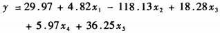 調(diào)用SAS系統(tǒng)的REG過程,對表4中各臭味指標(biāo)檢測數(shù)據(jù)做回歸分析。程序運(yùn)行結(jié)果:總回歸模型的P值為0.003,決定系數(shù)(R2)即相關(guān)系數(shù)的平方為0.8896,回歸方程可寫為