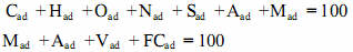 Cad+Had+Oad+Nad+Sad+Aad+Mad=100計(jì)算得到。
