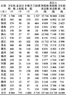 根據(jù)2000年廣東省衛(wèi)生統(tǒng)計(jì)資料,全省醫(yī)療衛(wèi)生機(jī)構(gòu)、醫(yī)院病床等分布情況見(jiàn)表1。