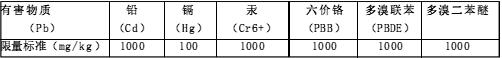 表1-1 RoHS中六種有害物質(zhì)的限量標準