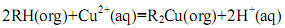 LK-C2是一種羥酮肟和羥醛肟的復(fù)配物,其萃銅機理為陽離子交換機理[15]: