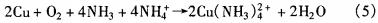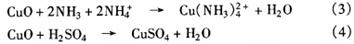 Cu的氧化物等可被氨與銨鹽的溶液溶解,還可用稀H2SO4溶液等浸出。浸出過程如式(3)、式(4)所示。