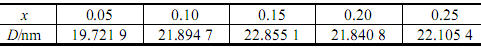 根據(jù)Scherrer公式可以計(jì)算出Cu2+摻雜的鈷鐵氧體的晶粒度: