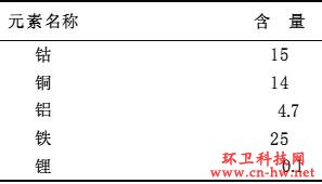 表1常見鋰離子電池中金屬含量%