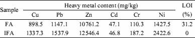 表1灰中重金屬含量與熱灼減率
